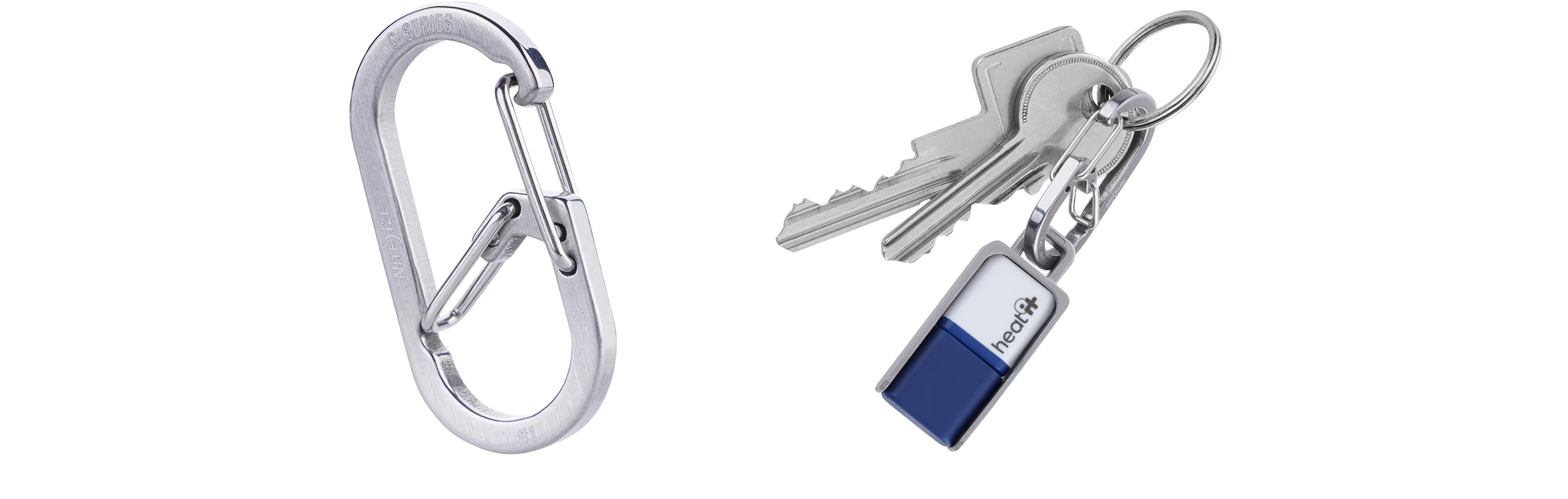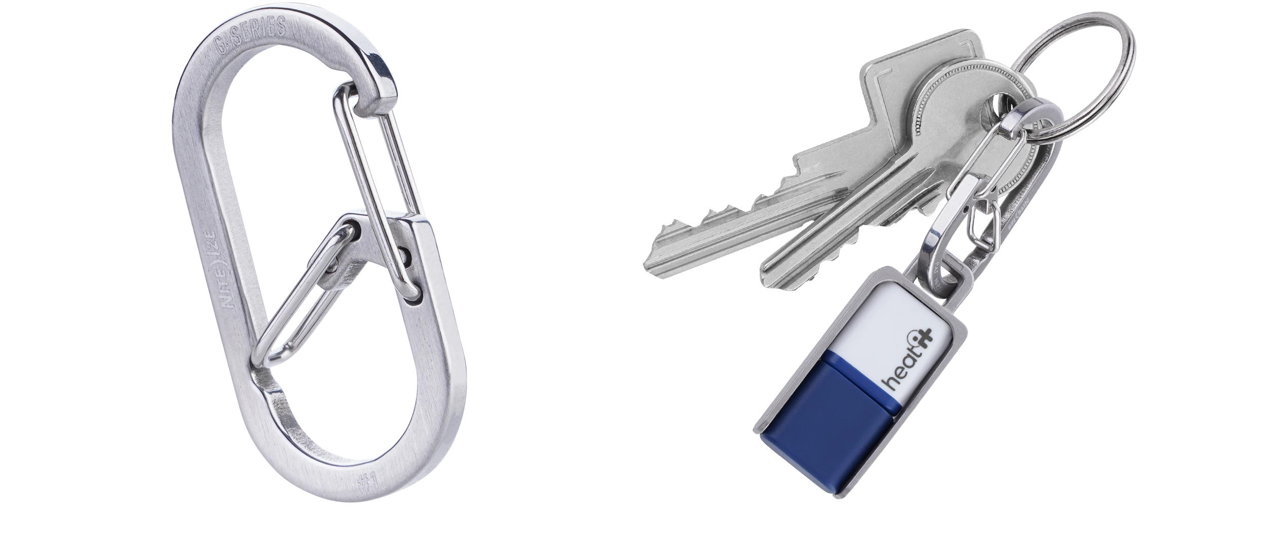 Jetzt neu und einfach praktisch: Mit diesem Karabiner kannst du deinen heat it® unkompliziert befestigen und deinen Schlüsselbund organisieren.