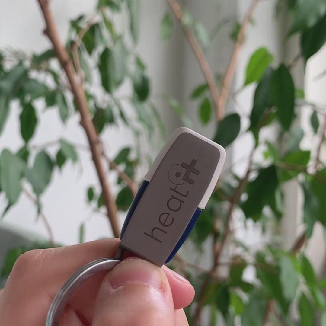 1) Open: Hold the metal cap by the key ring with one hand. Pull the heat it® with the other hand.